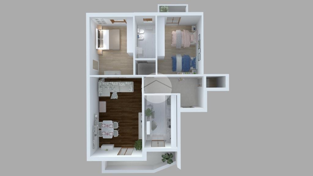 L'immobile è composto da ingresso dove è presente un pratico ripostiglio, cucina abitabile con accesso al primo ampio balcone e spazioso soggiorno con affaccio esterno. Attraverso un comodo disimpegno si arriva nella zona notte, che ospita due camere da letto matrimoniali, di cui una con affaccio sul secondo balcone della casa, e un bagno finestrato con vasca.